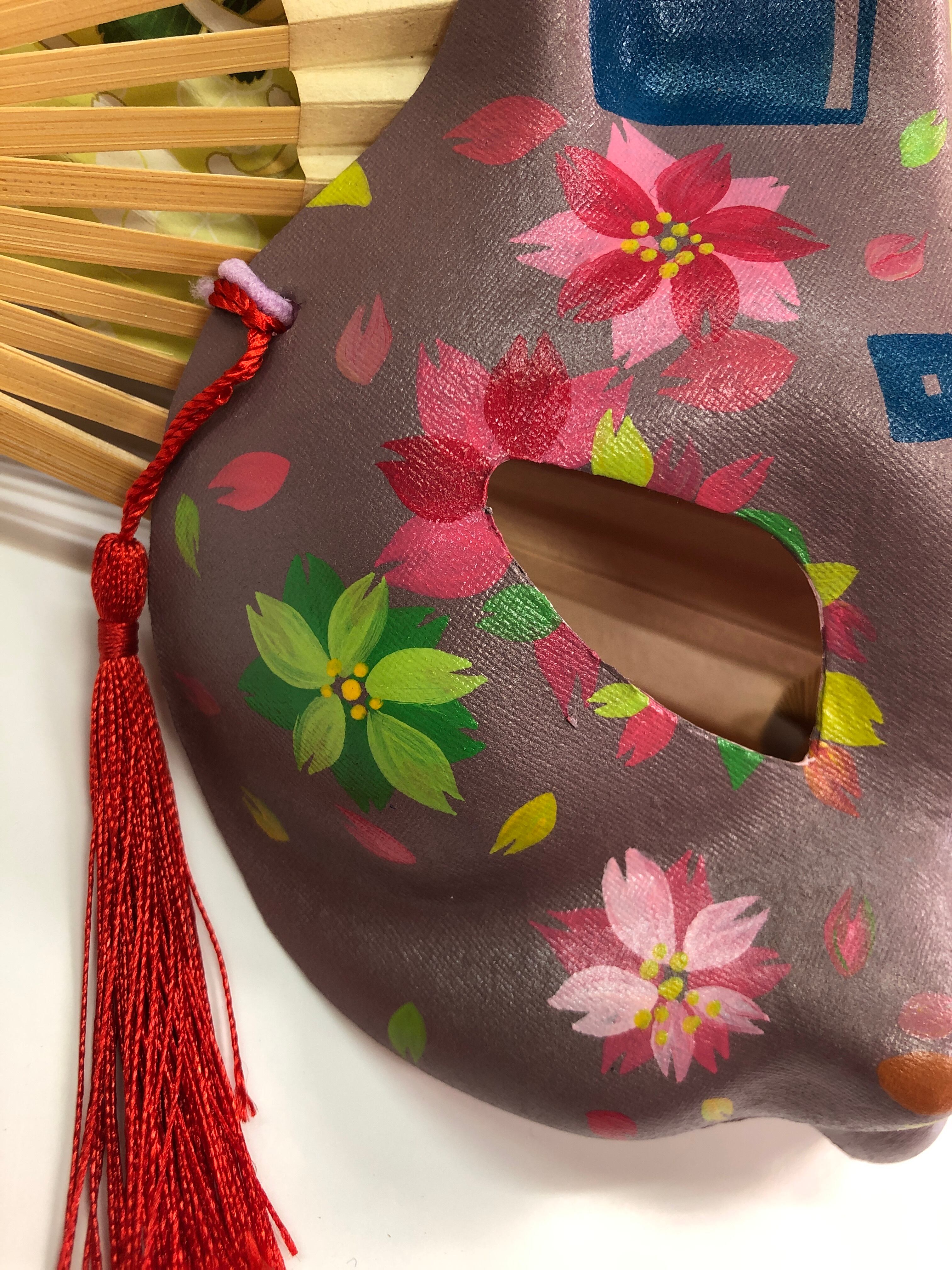 こちらのお面は装着時には口元が出るので、顔に着けて使う場合でも息がしやすくて使い易いと思います。