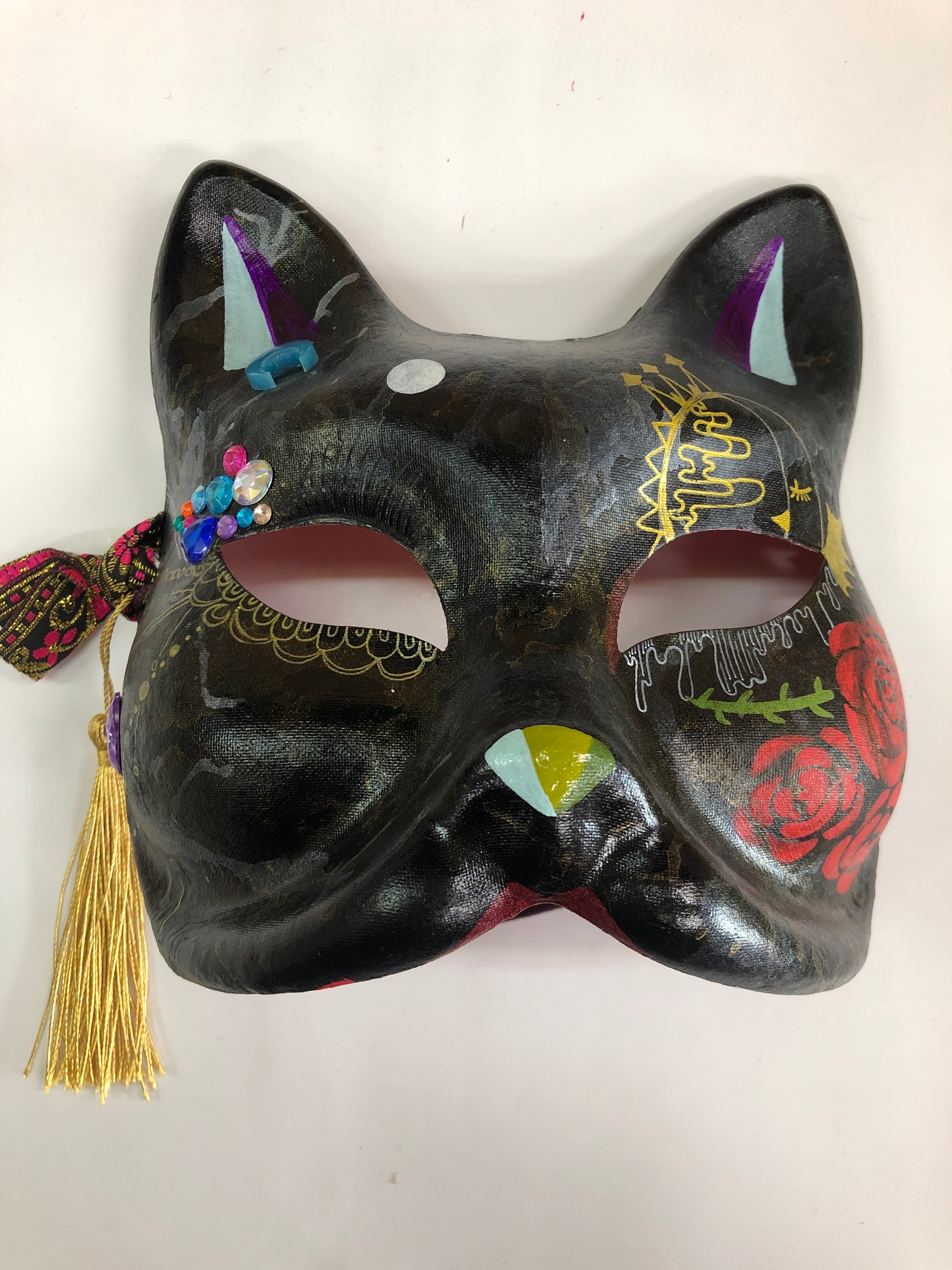 お面に装飾としてくっ付いてるモノ▷▶キラキラするストーンシール、リボンの飾り、付けまつげ(ガチ)、レジンのお月様、房飾り