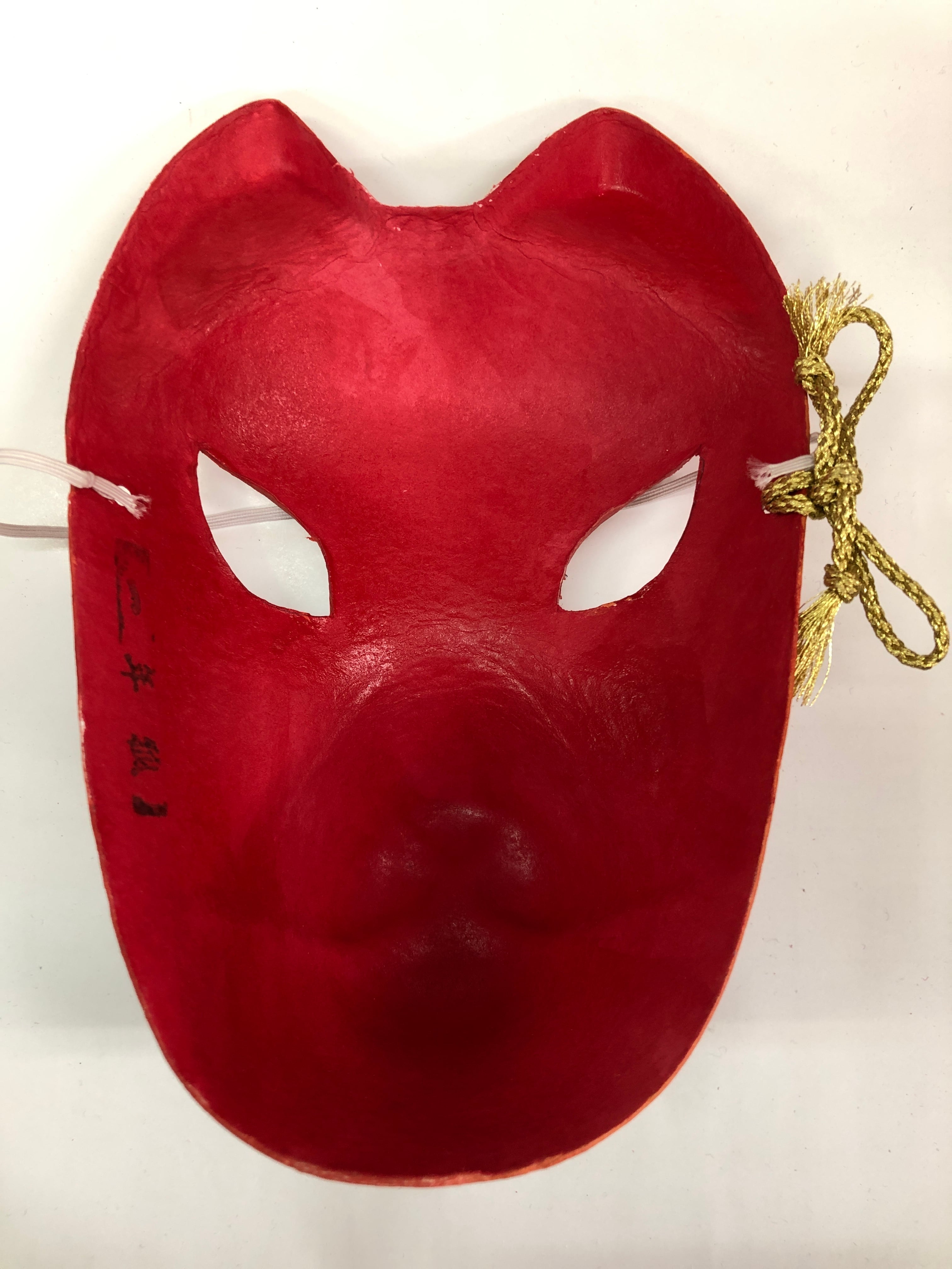 狐面フル 赤橙 猪目 蜘蛛 歯車 波 紐飾り付