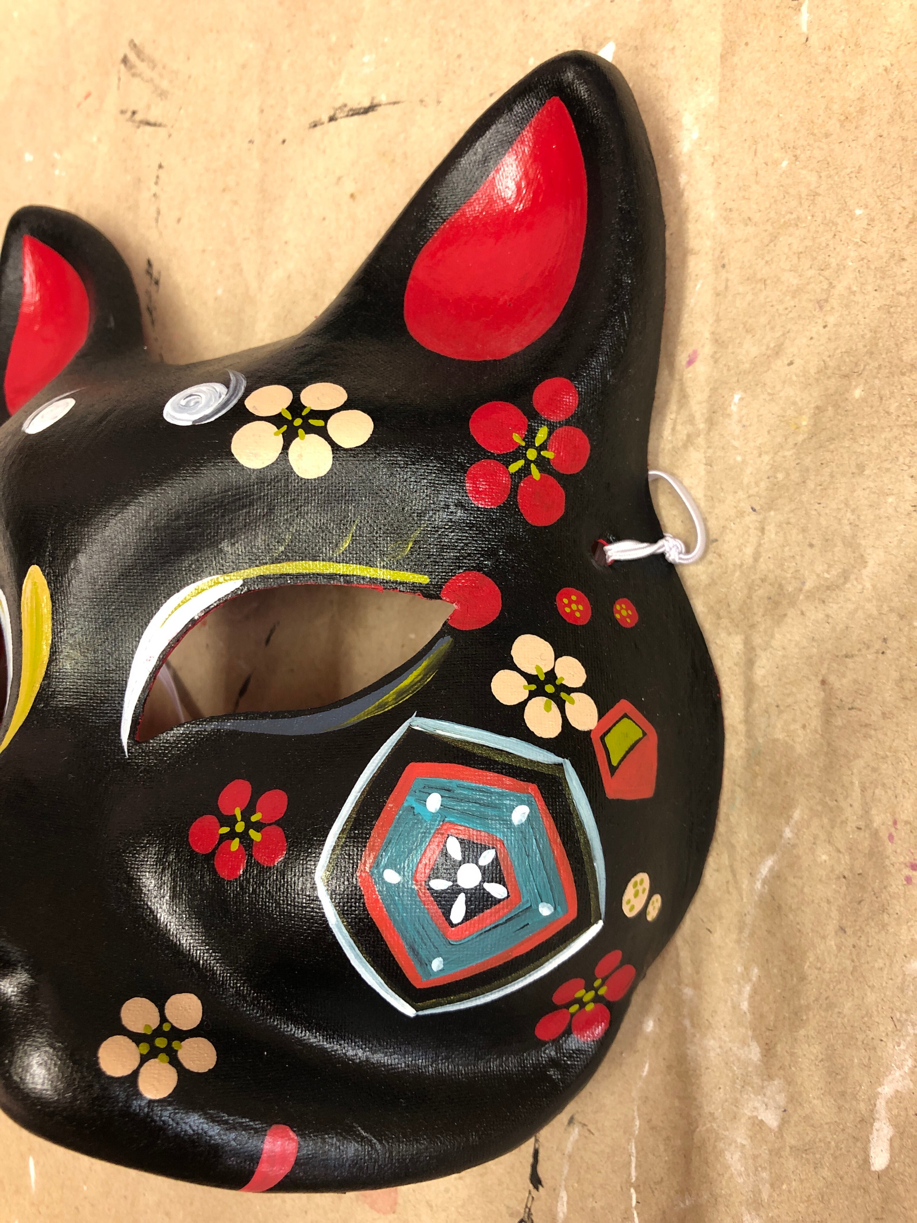 飾りとしても、実際にお面として顔や頭につけても使用していただける様になっています。